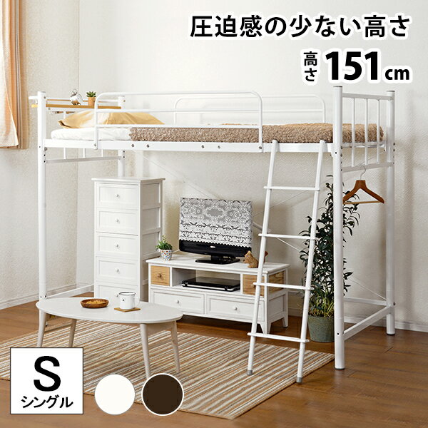 ロフトベッド シングル パイプベッド 頑丈 丈夫 ミドル ロー ハイタイプ ハイベッド 子供 大人用 システムベッド 一人暮らし スペース活用 スチール